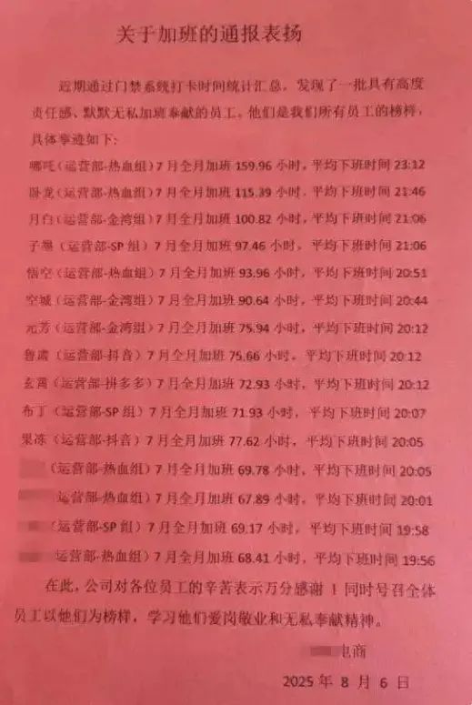 8月6日,某电商公司发布《加班通报表扬》,上榜员工里,最高月加班159.96小时,平均下班23:12。公司还声称:加班“非强制”,但如果你不申请的话,那就没有加班费。