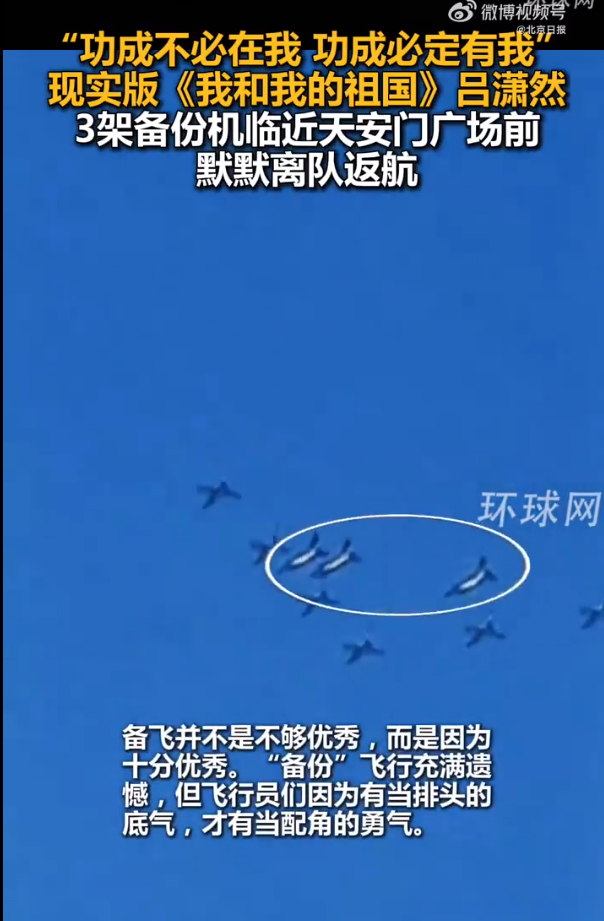 “功成不必在我,功成必定有我。”备份战机果断掉头的英姿,人民看到了、祖国会记得!向为阅兵成功默默付出的每一位官兵致敬!