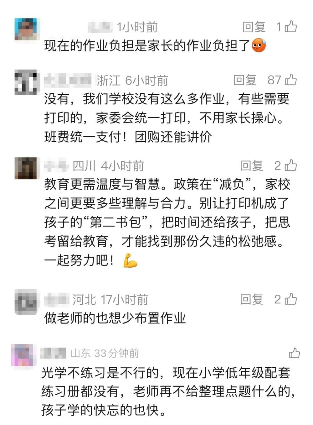 近期,有一些地方的中小学频繁将“成页不成册”的电子作业或试卷照片发到微信群让家长打印,多的时候一晚上得打印几十页。这一操作不仅导致学生减负难,家长下班后也疲于看群,生怕一时疏忽耽误孩子作业进度。久而久之,打印作业就成了万千家长的“必答题”。有家长吐槽孩子一上小学就要买打印机,相关话题也登上热搜,事件引发关注。
