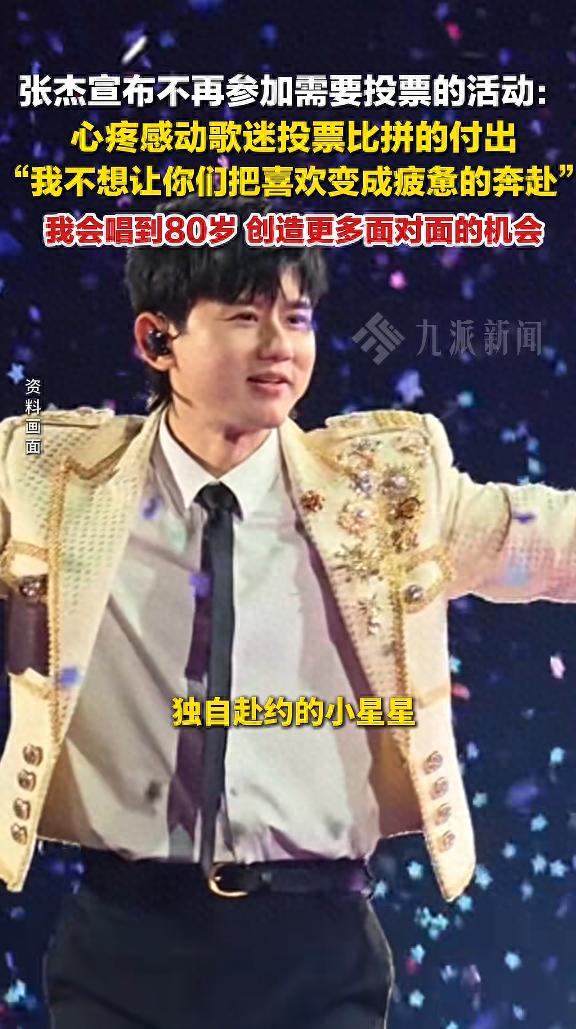 “从今天起,所有需要歌迷投票的颁奖礼,所有需要你们耗费精力去比拼的活动,任何一种形式的投票,我都不会再参加了。”近日,歌手张杰在演唱会上宣布,不再参加任何需要歌迷投票的活动,称不想让粉丝的喜欢变成疲惫的奔赴。此事引发关注,有网友留言称“挺好的,歌迷也不用熬夜投票”“路人粉真的很感动”“他在用心做音乐回馈粉丝”。