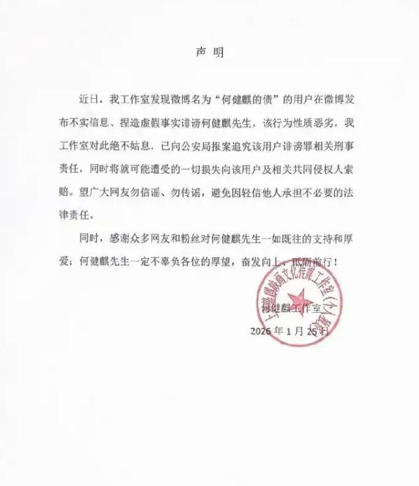 何健麒工作室声明