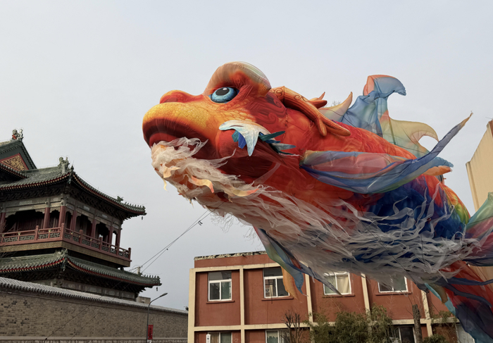 上新街作为济南城市更新的亮眼样板,这条百年老街在修缮改造后,保留老城肌理、注入新潮业态,迅速成为众多市民外出游玩的打卡胜地。而在马年新春期间亮相的巨型鳌鱼,更是精准踩中城市文旅的流量密码:龙头鱼身的雄健造型、“独占鳌头”的吉祥寓意,搭配新潮的空飘呈现形式,让传统民俗与现代审美完美地融合,迅速成为泉城济南新春假期的顶流打卡点。