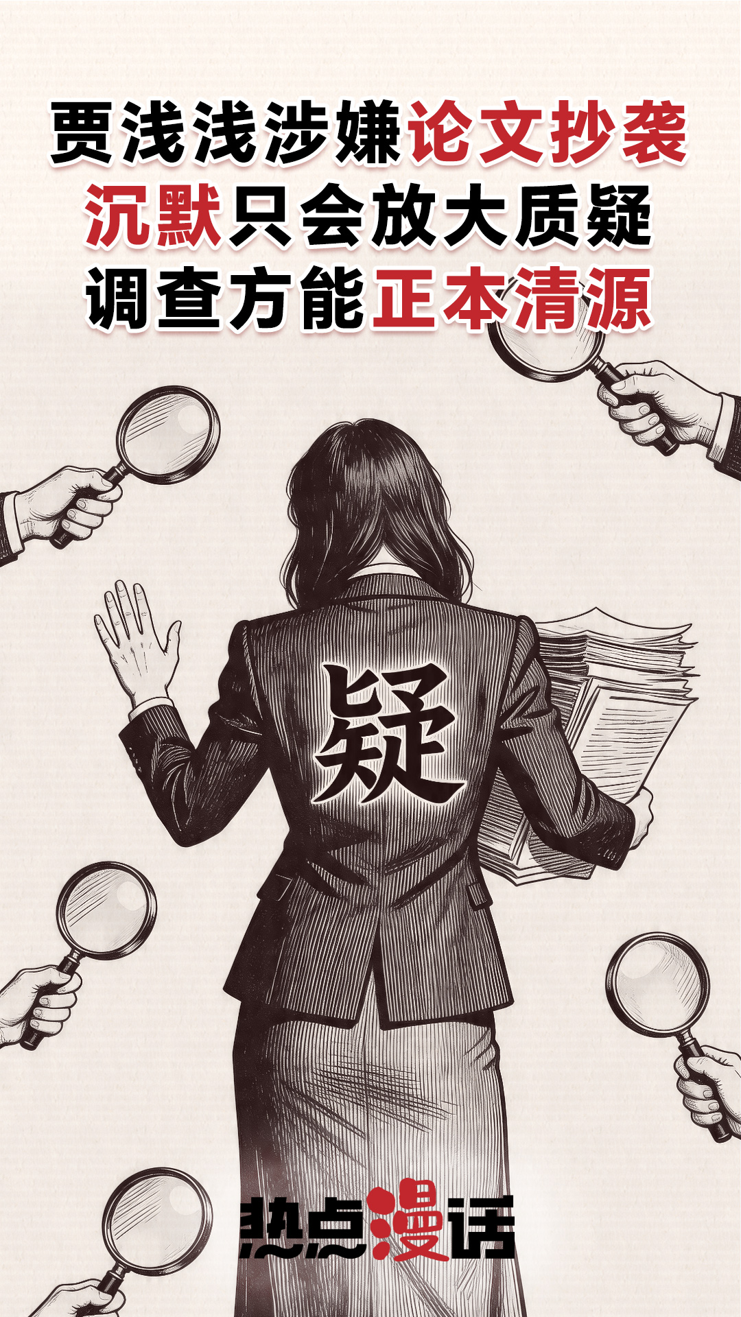 人民网:沉默回避无法解决问题,反而会让质疑不断发酵、持续放大,进一步加剧公众对学术公平的疑虑,透支学界公信力。对贾浅浅而言,被动等待调查结论,远不如主动作为、自证清白。面对质疑,贾浅浅自证清白不是“陷阱”,而是基本义务。
