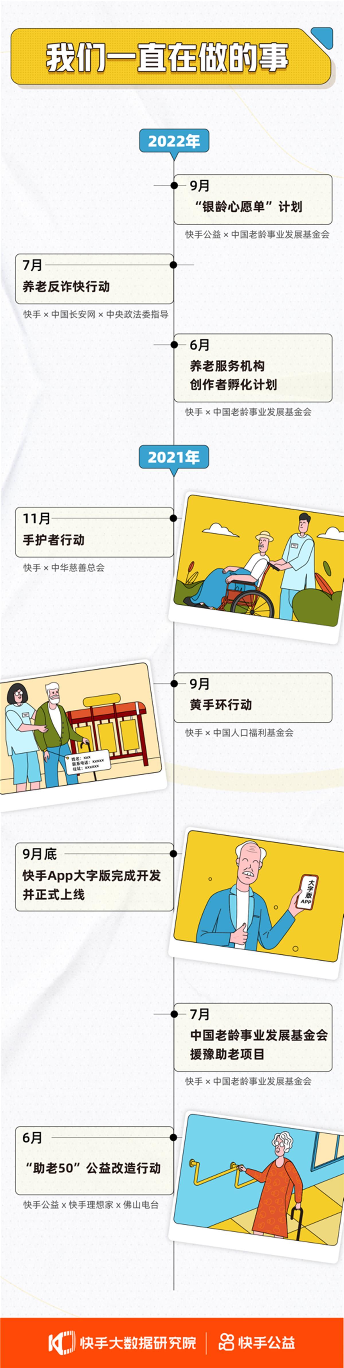 长期以来,类似快手这样的平台持续关注银龄人群,并联合各类慈善机构共同发起一系列助老、爱老活动,助力银龄群体老有所为、老有所乐。通过短视频和直播,我们或许可以了解更丰富、更真实的银龄样貌。