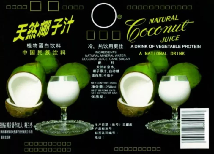 据说,当年椰树牌椰汁最初的包装与广告十分清新,还被《海南日报》点名表扬。而这些设计均出自海南当地的一位小有名气的画家柯兰亭之手。