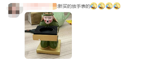 在“年轻人有多爱买丑东西”话题下,许多网友晒出了自己收藏的“丑东西”,只为和其它“丑东西”一决高下,比比到底谁更丑,比如这座放手表的小人雕像。