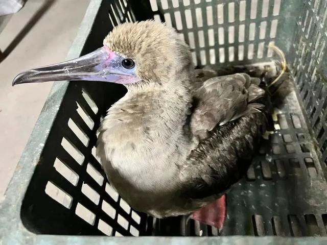 经确认,该鸟为国家二级保护动物红脚鲣鸟,而且是一只红脚鲣鸟亚成鸟。