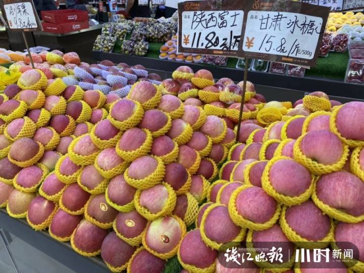 店里苹果,除了6.8元一斤的山东富士,还有9.8元一斤的洛川苹果,11.8元一斤的水晶嘎啦和陕西富士,12.8元一斤的野生苹果,甘肃冰糖心则是15.8元一斤。