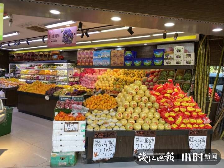 上午九点多,记者来到建国北路的一家水果店。一靠近店面,就闻到一阵清新的果香。柚子、橘子、梨、火龙果,各式水果分门别类摆在货架上,颜色鲜亮,看着很是喜人。