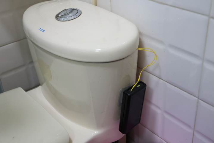 除了智能手环,还有一款“聪明”的水箱监测器,可以监测老人家中坐便器的水位。