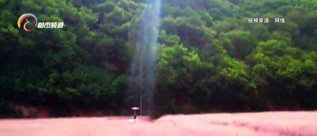 视频拍摄者:“无人机拍的,当时就是拍了快没电了,就降落到和花平面,和花海水平面的这个位置的时候,然后转过来就看到这一束光。”