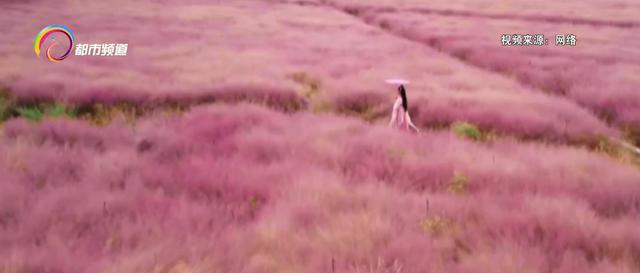 视频画面中,一位身穿粉色古装的女子缓缓走在花海中,突然天空中撒下一道光束,仿佛是打着聚光灯一般,照耀在女子身上,随着女子翩翩起舞,画面神秘又美丽。