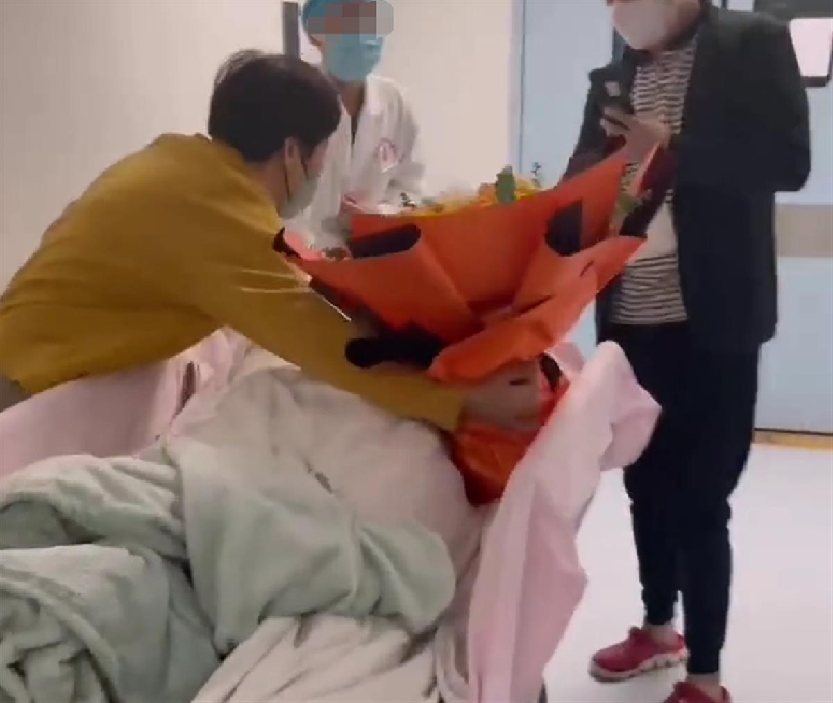 儿媳生产完刚被推出手术室,婆婆一路小跑献花亲吻(网络视频截图)