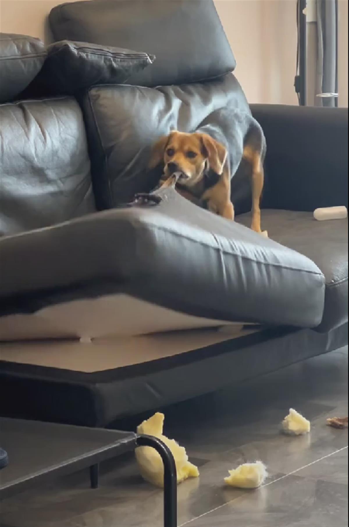 宠物狗年年正在撕扯沙发垫子(图源:视频截图)
