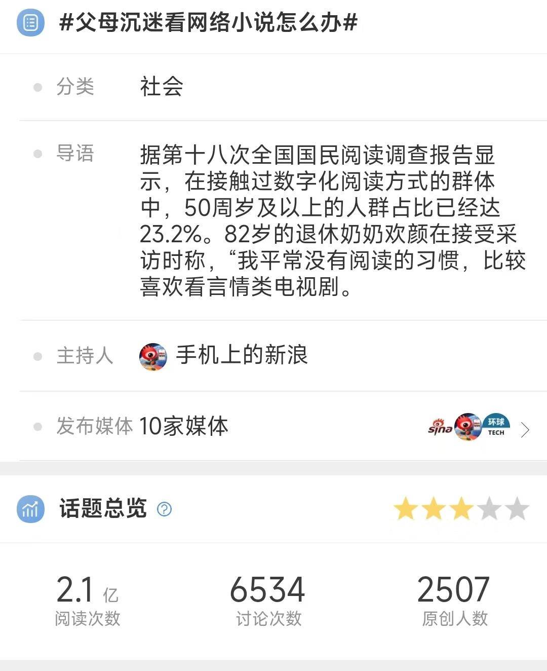 这也让不少年轻人发出担忧,害怕“触网”不久的长辈沉迷在小说构造的“虚拟世界”,影响正常的生活和身体健康。甚至在一些平台上,还出现了“要求爸妈强制戒小说”的发言,闹得家庭关系出现问题。