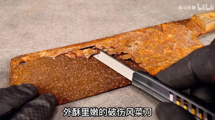 修复生锈菜刀。图/视频截图