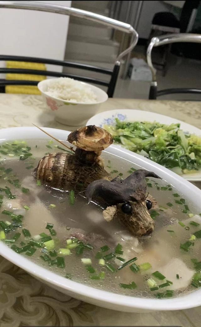 将煮好的菜端上饭桌后,胡格林骗女儿说这是乌龟汤,女儿胡雯双看了几眼竟信以为真。吃完饭后,胡雯双把爸爸用蘑菇做的“乌龟汤”发在了网上,意外收获了许多点赞与收藏。胡格林不精通社交平台,短时间的大量点赞有些把他吓到了,担心会有什么不好的影响,他一开始还要求女儿“赶快屏蔽掉”。