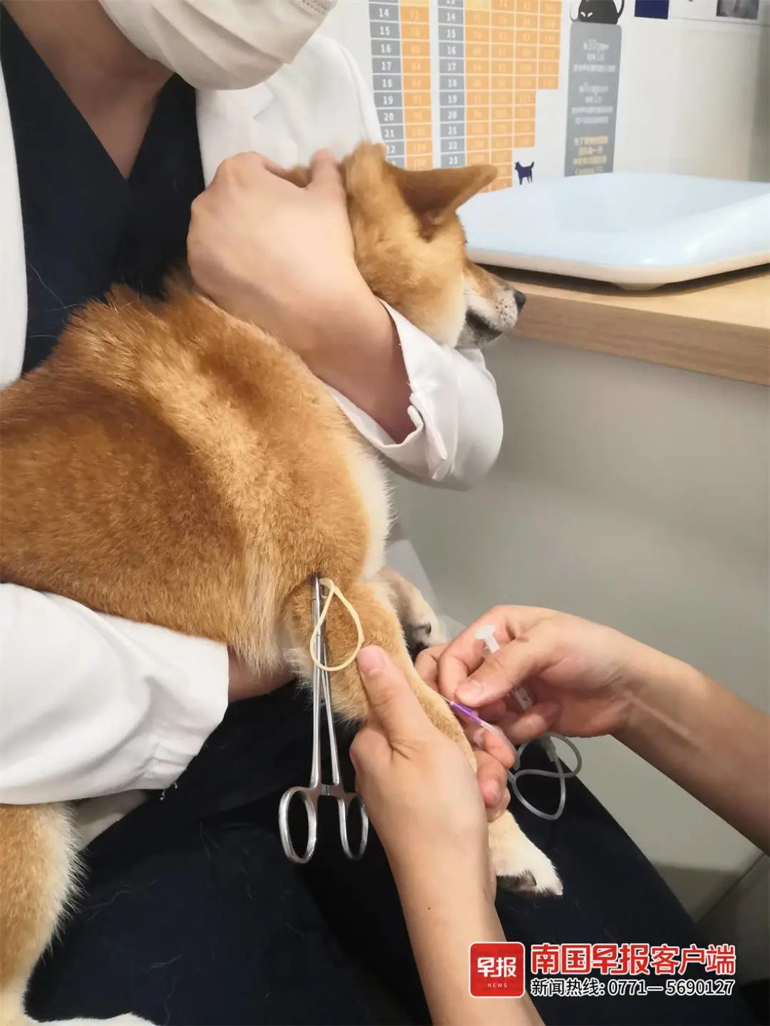 ▲黄女士的柴犬在宠物保险指定医院接受治疗。