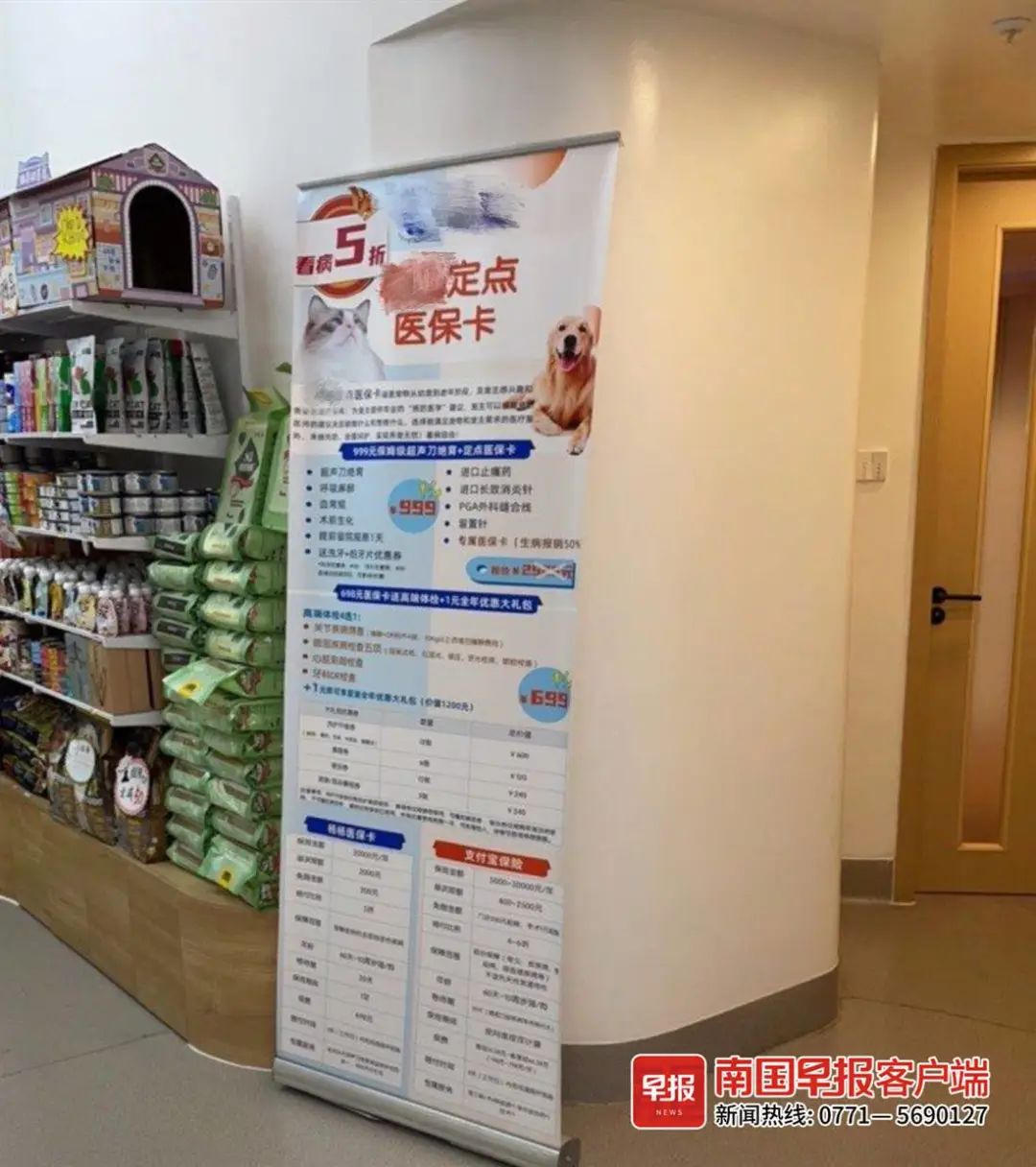 ▲南宁一宠物医院内,在明显位置摆放了宠物保险推广。