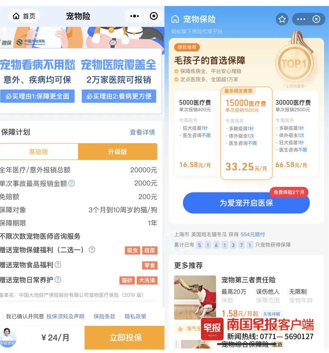 ▲宠物主可在一些平台上为宠物投保。