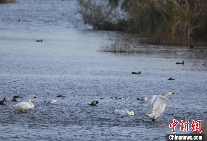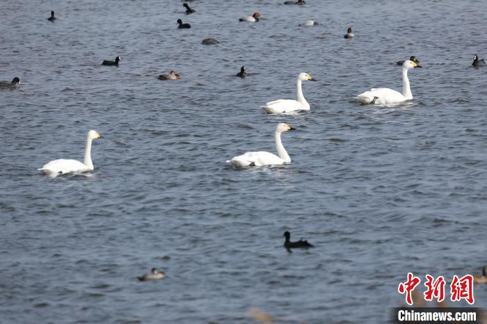 日照市湿地生态环境不断改善,吸引了白天鹅、鹈鹕、鸳鸯、白鹭、苍鹭等多种鸟类前来“安家”过年。 宋年升摄