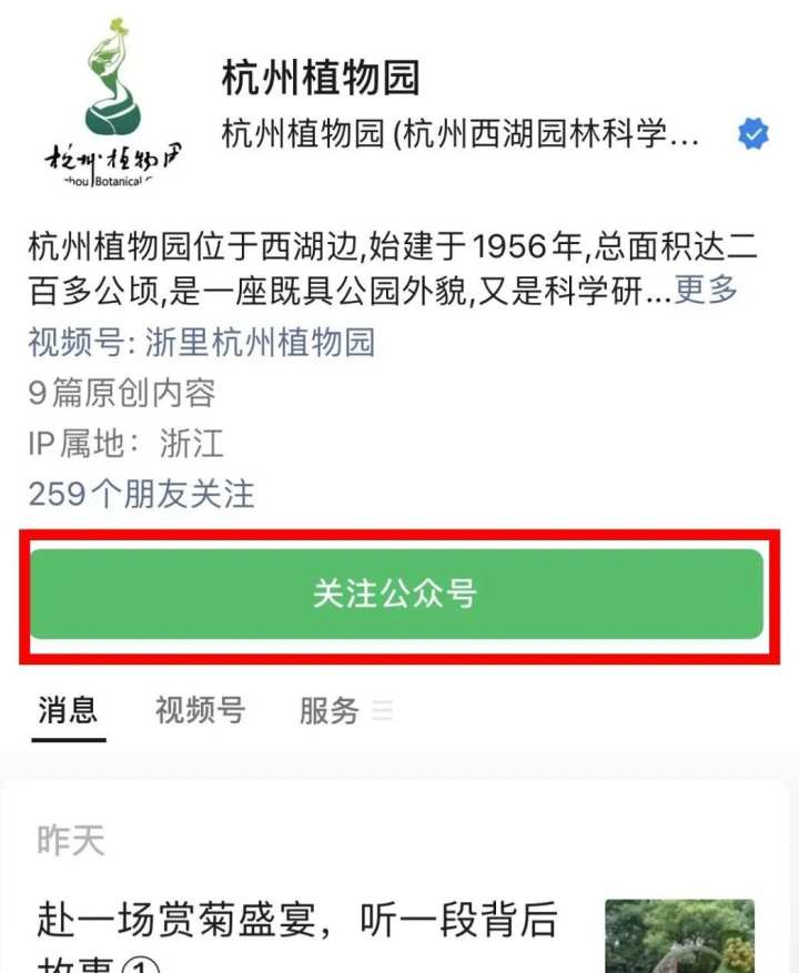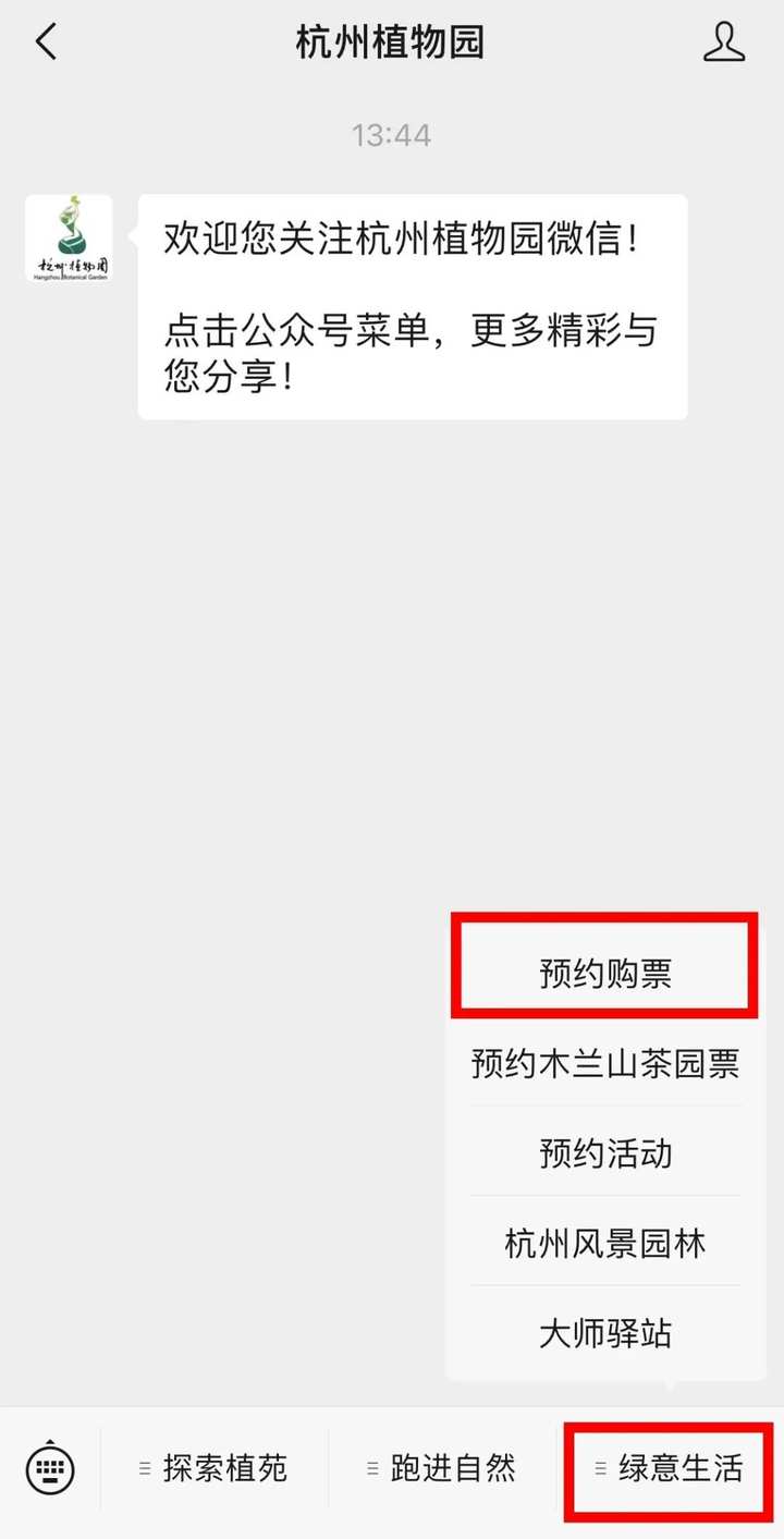 具体预约方式:请长按下方二维码关注“杭州植物园”微信公众号,进入公众号后,点击菜单-绿意生活-预约购票。