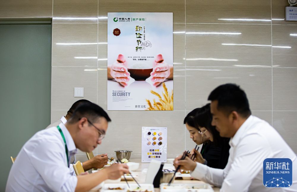 11月11日,在云南省昆明市,中国人寿财险云南省分公司职工在公司食堂就餐。新华社发(唐金鹏摄)