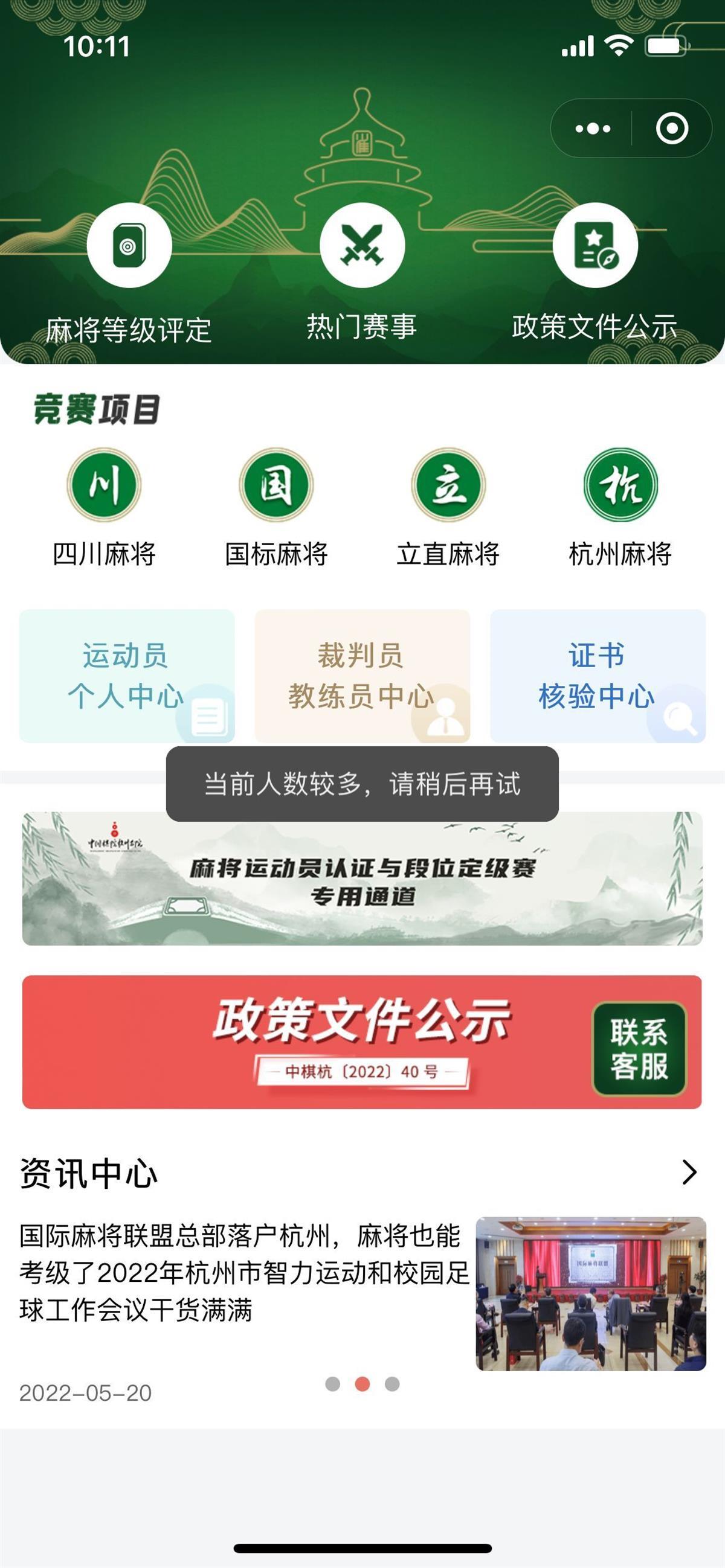 记者于11月15日尝试网上参加答题,注册成运动员,但系统提示“当前人数过多。”杭州棋院工作人员解释,在规则发布后,各地“麻友”都踊跃参与,小程序因瞬时访问量超过百万,出现过无法登录的现象,目前技术团队也都准备好了系统解决方案,将在近日完全解决登录问题。