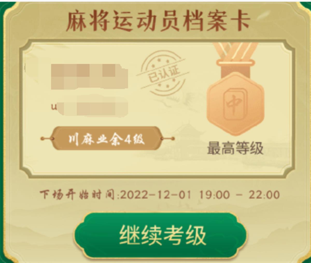 目前线上程序最高仅能考到业余4级,更高的等级会逐步开放。“我现在的等级就是4级,只要等级放开,我觉得我能达到9级。”单剑调侃道,麻将等级现在就好比考试,他对自己的实力很有信心。