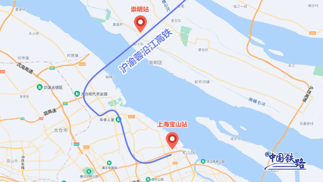 刚开工建设的上海至南京至合肥高速铁路,是国家“八纵八横”高速铁路网沿江高铁通道的重要组成部分。上海宝山站和崇明站是这条高铁在上海的新建车站。