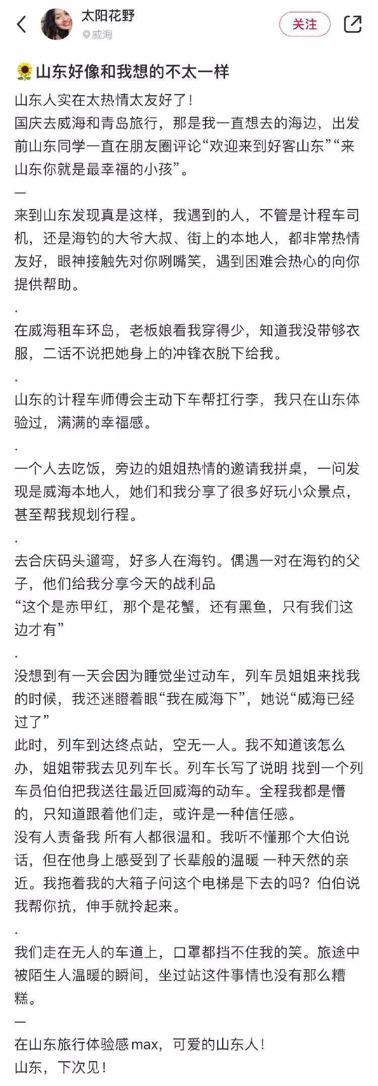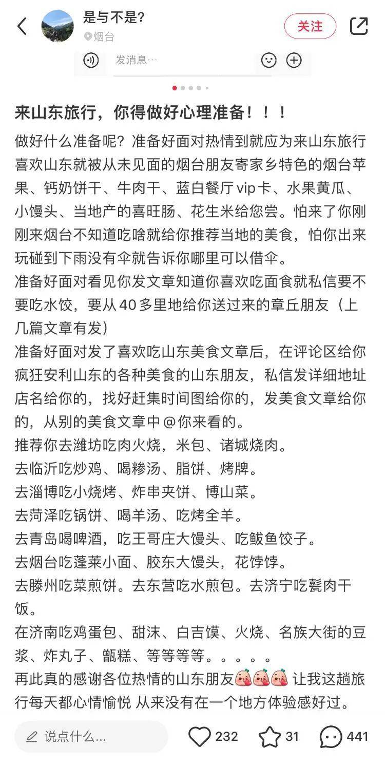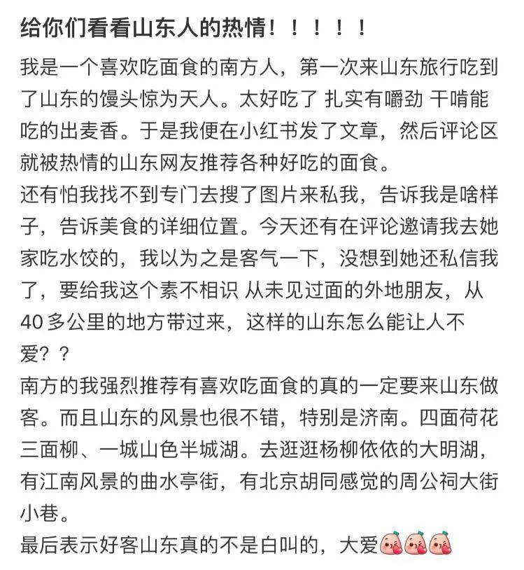这些网友无一不对山东人的热情好客、实在真诚记忆犹新