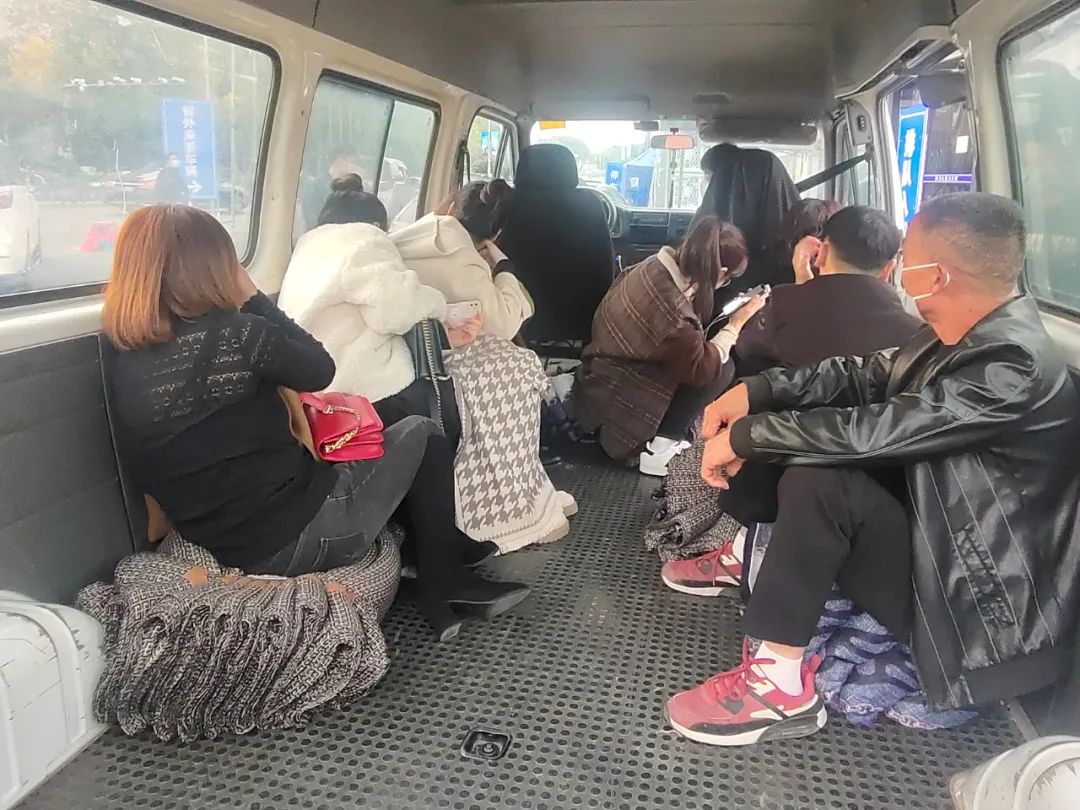 只见后排座位全部被拆卸,乌泱泱的一群人躲在车厢内,有的蹲在那里,有的更是席地而坐。经查,这辆核载6人的车,居然坐了10人!