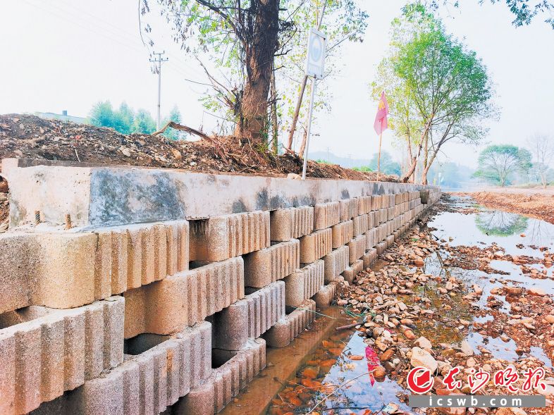 仔细看去,沿线新建的生态护坡显得很“打眼”——一块块生态砖砌得并不平整,而是错落有致地搭出了一个个孔洞。这是为什么?