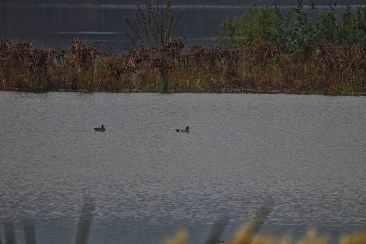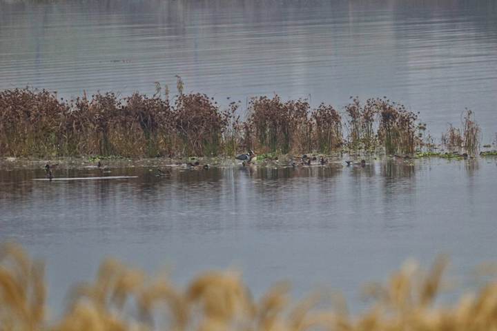 这次这只绿眉鸭是和十几只赤颈鸭混群飞来的,“我刚到青山湖边,一群鸭子飞过,虽然当天有雾,但我仔细看了一下,有一只比较不一样。”