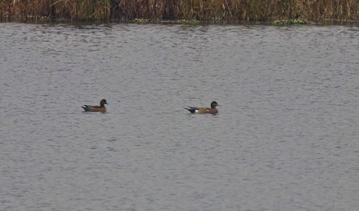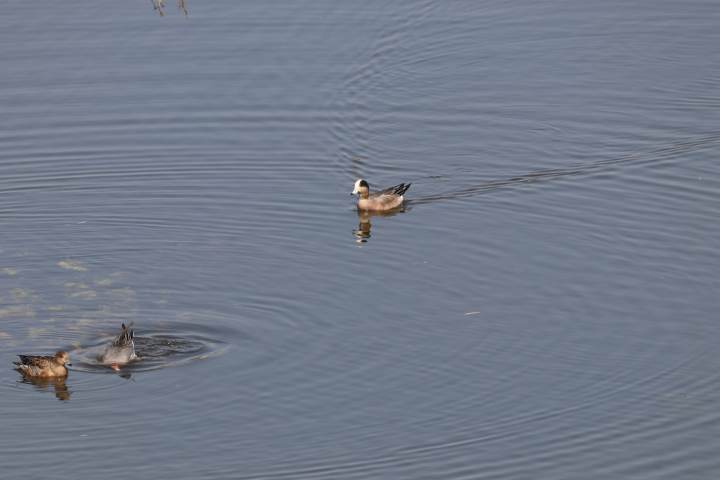 和赤颈鸭相比,绿眉鸭头部颜色是冷色调的,而赤颈鸭则是暖色调。另外一个区别在腋下,起飞或振翅的时候可以看到绿眉鸭腋下是白色的羽毛,而赤颈鸭腋下的羽毛则是灰色。