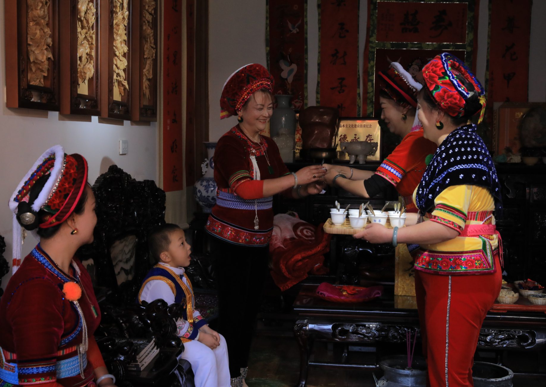 图为在婚礼上敬献“白族三道茶”(文化和旅游部供图,央广网发)