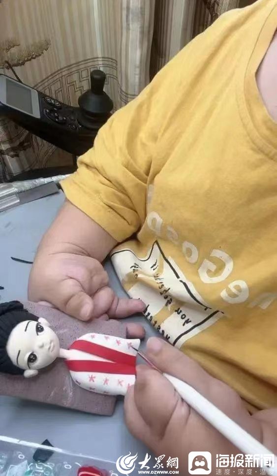 去年10月份,黄碧虹通过网络视频自学,零基础开始学习粘土手工制作。“做粘土手工,不需要太大的力气,又可以做出很好看的作品,还能调动双手的关节,让自己的手得到锻炼。”