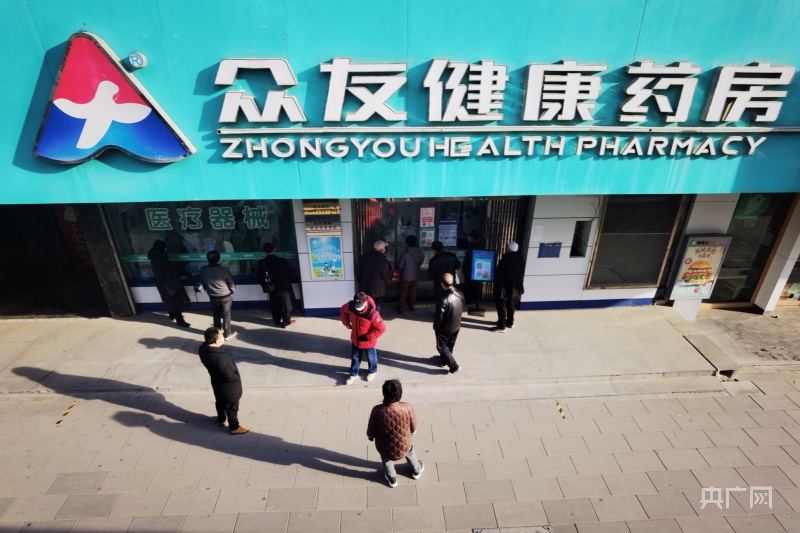 市民等待进入药店(央广网记者张海东摄)