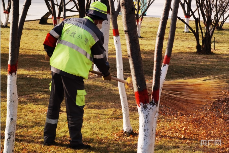 广场上忙碌的环卫工人(央广网记者张海东摄)