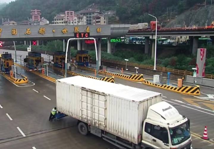 当日上午8点14分,青田收费站收费班长在外广场打扫卫生时,发现一辆浙A黄牌的厢式货车停在离出口收费车道不远的位置。货车停在这个位置,会挡住大车通行,同时也会影响现场的防疫检查工作。
