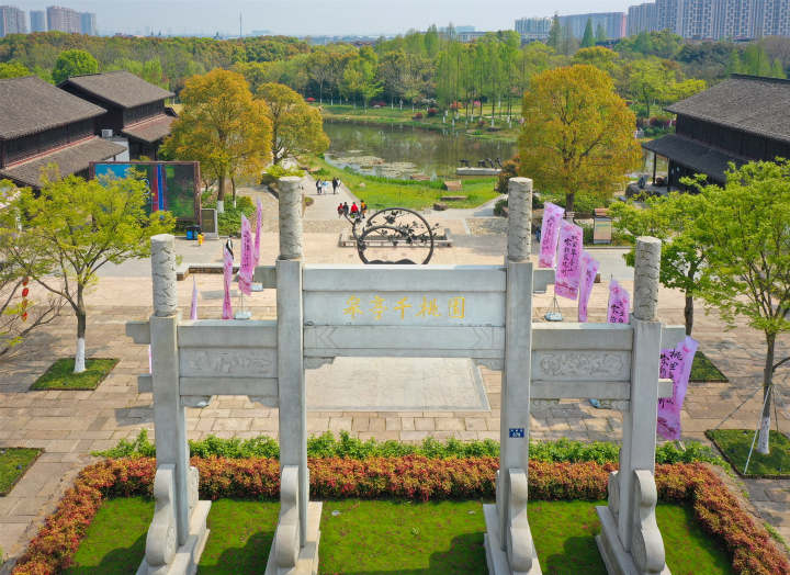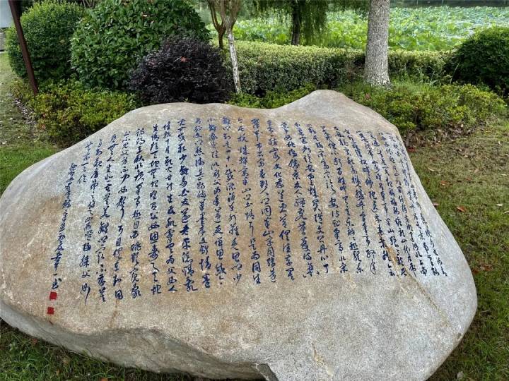 在皋亭千桃园,“家风孝道千诗千石刻”文化工程将书法名家亲手书写的1000首“家风孝道”诗词,雕刻于1000块石头上,书写的风格,篆、隶、楷、行、草,一应俱全。