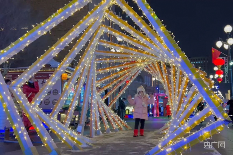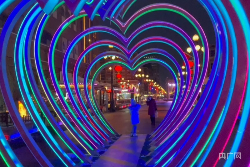 央广网乌鲁木齐12月18日消息(记者李昊轩)五颜六色的霓虹灯焕发着全新的活力,各式各样的照明灯具形成波光粼粼的金色天幕。12月18日,夜幕里的新疆乌鲁木齐市天山区大巴扎步行街处处光影交错、流光溢彩,“时光隧道”“人体打印机”等主题灯具吸引不少市民前来打卡、拍照。