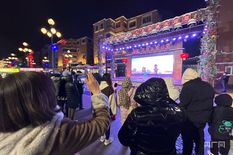 文艺表演吸引市民驻足观看(央广网记者李昊轩摄)
