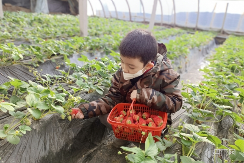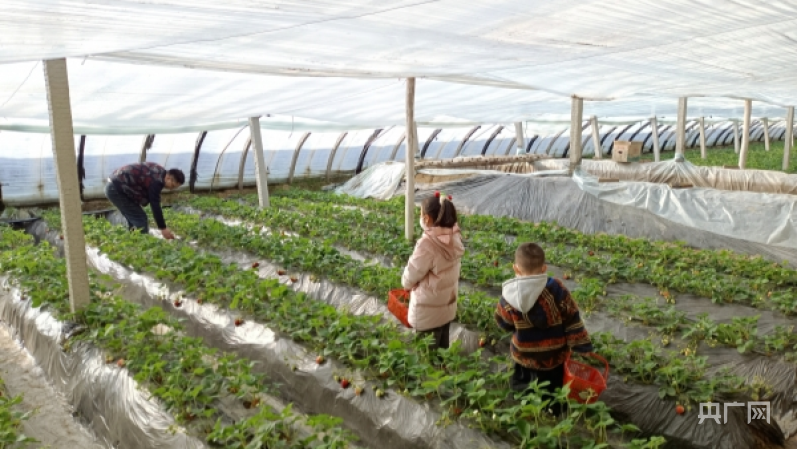 游客正在采摘草莓(央广网发库尔勒市委宣传部供图)