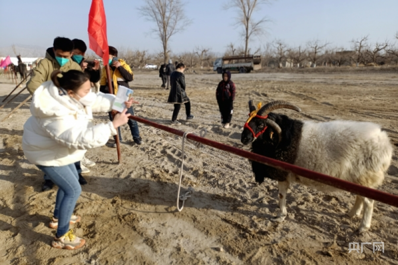 活动中,现场有四个角的公羊最为吸引眼球,它是来参加“美羊羊”“壮牛牛”选美大赛的“选手”之一。除此之外,品尝骆驼奶、近距离与鸵鸟、骆驼合影引来众多游客拿出手机拍照留念。