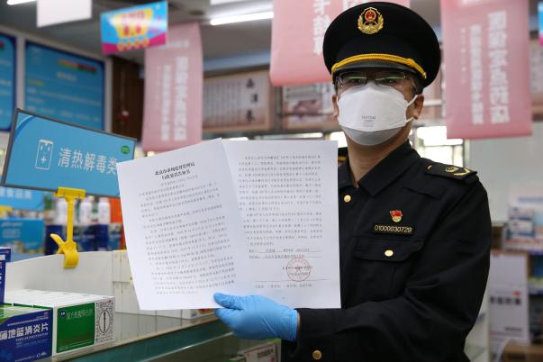 12月13日,某药房网上旗舰店哄抬连花清瘟拟被罚30万元,北京市市场监督管理局检查。“北京市场监管”图