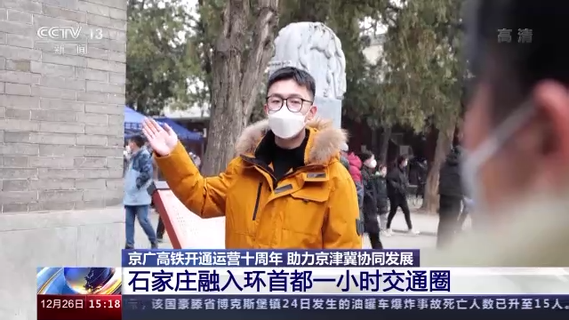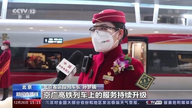 总台央视记者陈晰:我现在在北京西站,我身后的是北京西开往石家庄的G891次列车,从今天(26日)零时开始,全国铁路开始实行2023年一季度列车运行图,充分运用京广高铁京武段时速350公里高标运营成果,北京西至石家庄,每天开行10对,运行时间1小时的直达高铁列车。