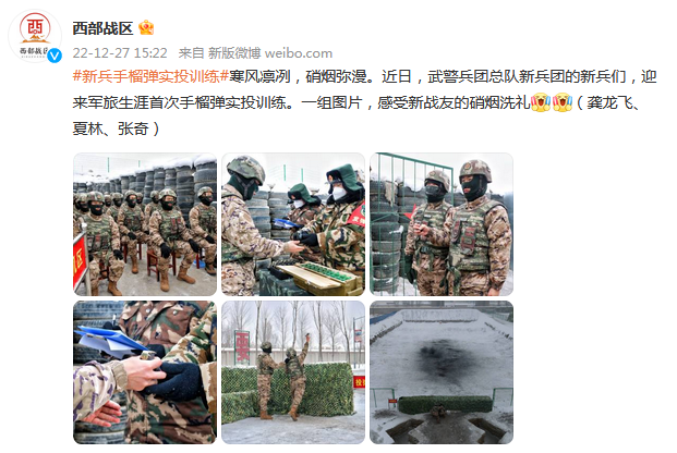 寒风凛冽,硝烟弥漫。近日,武警兵团总队新兵团的新兵们,迎来军旅生涯首次手榴弹实投训练。一组图片,感受新战友的硝烟洗礼(龚龙飞、夏林、张奇)