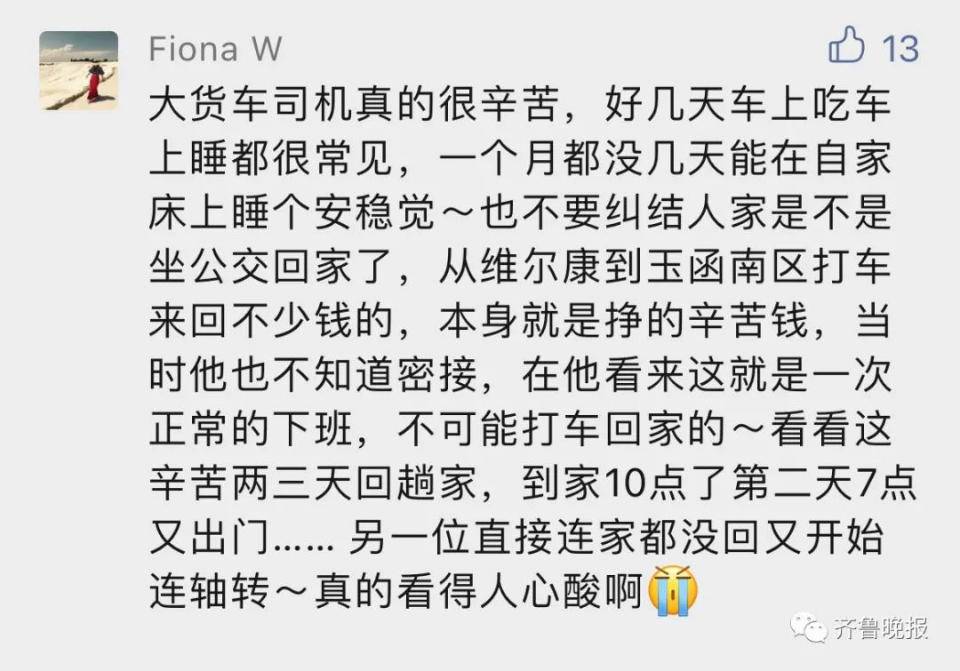 2例确诊是北京返济的货车司机,评论区没有一句责备没有埋怨声,反而网友纷纷祝福司机师傅,早日恢复健康,回家过个好年。被大家的评论暖哭了,狠狠感受了一把济南人的温情。
