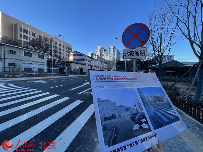 高建东介绍,道路顺利打通后,这片区域道路交通实现了优化。通过拓宽路幅,增强了周边路网承载能力。按照“道路红线宽25米”的规划设计,北极阁路连接了朝阳门南小街和东单王府井地区,其南侧的南衣袍胡同、栖凤楼胡同和中纺大厦西侧道路均可通往长安街,其北侧的北极阁胡同、北极阁东巷、春雨胡同,可通往北极阁-西总布平房区,形成与长安街“主街”平行的“后街”,弥补了片区南部大尺度、稀疏的公共道路网,成为长安街交通集散的有效衔接。目前,北极阁路实现了全线双向行驶。北极阁路与其南侧通往长安街的3条支路均设有双向车道,有效分流长安街、朝阳门南小街、东单北大街等主干道及沿途路口的交通压力,且为电动自行车出行提供交通便利。